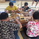 工芸会館の見学の後は、組合の2階で彫金体験(風鈴制作)をされました。
