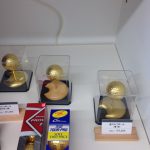今、展示してありますのは小型仏壇とゴルフボールに金箔を押してあります金ゴルフボールです。