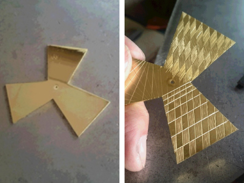 三枚の羽をおり、立体に立ち上げ部品を付けて完成させます。