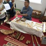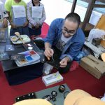 1階でDVD鑑賞、2階では、仏壇を製作する七工程の中の4工程(仕上(箔押し)・宮殿・金具・蒔絵)の実演を見てもらいました。