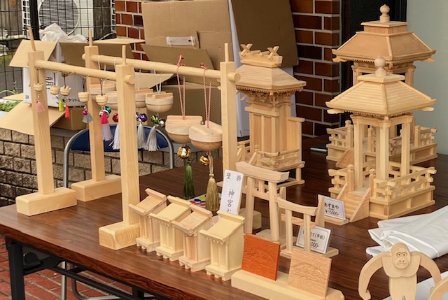 金仏壇、現代型仏壇、小型仏壇、数珠、その他にウッドオブジェ、鳥居、おやしろ、アクセサリー、笛など、多くの工芸品を展示しております。