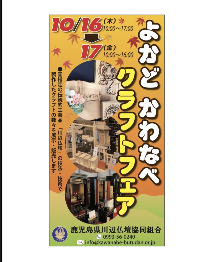 場所:よかど鹿児島明日から、「よかどかわなべクラフトフェア」を開催いたします。